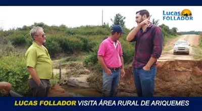O Vice Prefeito de Ariquemes Lucas Follador (DEM), tem buscado garantir recursos financeiros via emenda parlamentar de Deputados Estaduais e da bancada Federal para Ariquemes, como também percorrido a área rural, onde tem encontrado lugares que os produtores estão tendo dificuldades para escoar seus produtos. Em um vídeo divulgado nas redes sócias, Lucas Follador mostra situações que exigem uma atenção rápida do município, e já informou que todas as demandas foram levadas ao conhecimento do Secretário Municipal de Obras.