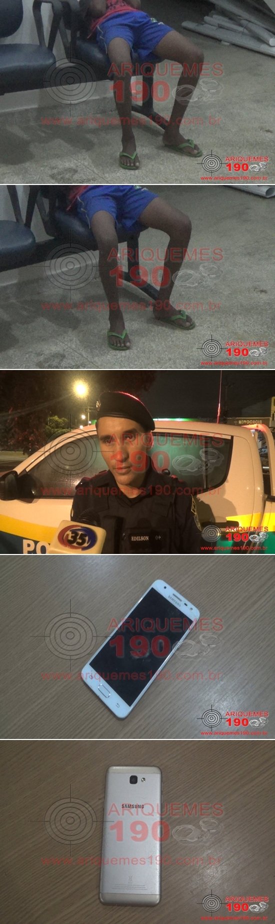 Eram por volta das 21h50m desta quinta-feira, 28/02, quando a guarnição da Polícia Militar Patrulha Charlie, composta pelos Policiais Cabo Rodrigues, e Soldados Edilson e Verônica, foram acionados a comparecer na Av. Perimetral Leste, Bairro Parque das Gemas em Ariquemes, para atender uma ocorrência de furto. Ali chegando os Policiais realizaram contato com a vítima, uma senhora de 42 anos, a qual relatou que dias atrás estava sentada em um banco na praça do Setor 02 e ao seu lado estava um menor de 12 anos de idade, momento em que levantou para praticar esporte e deixou no banco seu Aparelho Celular marca Sansung de cor rose com tela trincada. Ao retornar não encontrou nem o menor e nem seu celular. Na data de hoje a vítima estava em um capo sintético de futebol localizado na Rua Perimetral Leste, quando viu o tal menor que estava em posse do aparelho celular, objeto este reconhecido como sendo de sua propriedade. Ao constatar os fatos os Policiais deram voz de apreensão ao menor, que foi conduzido a UNIS, onde foi registrado o Boletim de Ocorrência Policial sob n° 38017/2019, com o acompanhamento da genitora e da Conselheira Tutelar Isabel Felizardo.