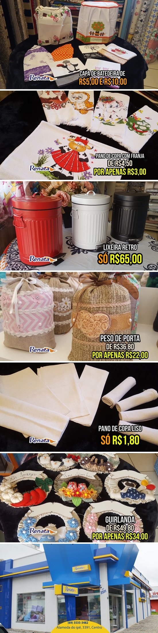 Faça uma visita na Renata Enxovais, vestindo de moda a sua casa na Travessa Maracatiara, telefones 3535-3482 ou 9 8413-6553.