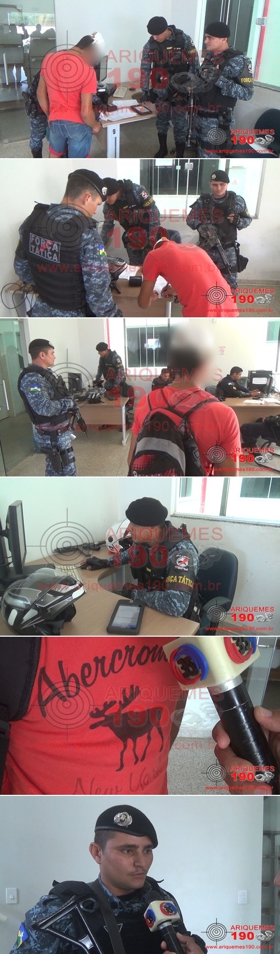 No fim da manhã sábado, 09/03, deu entrada na UNISP de Ariquemes a guarnição da Força Tática do Município de Monte Negro composta pelos Policiais Militares: Cabo Rocha e Soldados Galdino, Carlos Henrique e L. Santos, trazendo o conduzido J.S, maior de idade, o qual teria sido detido devido a um Mandado de Prisão em aberto em seu desfavor pela prática do crime de Furto no Estado do Acre. Ao conceder entrevista à equipe de reportagens do site Ariquemes190 e Canal 35.1 Digital, PM L. Santos relatou que o Oficial de Justiça procurou o Quartel local para obter apoio da Polícia, no intuito de dar cumprimento ao Mandado expedido pela Justiça do Estado do Acre. Ao dirigirem-se no endereço indicado, lograram êxito em encontrar o fugitivo, sendo que o mesmo foi detido e encaminhado à UNISP do município de Ariquemes, onde foi registrado o Boletim de Ocorrência para que os trâmites necessários pudessem ser encaminhados no tocante ao cumprimento da pena de J.S.