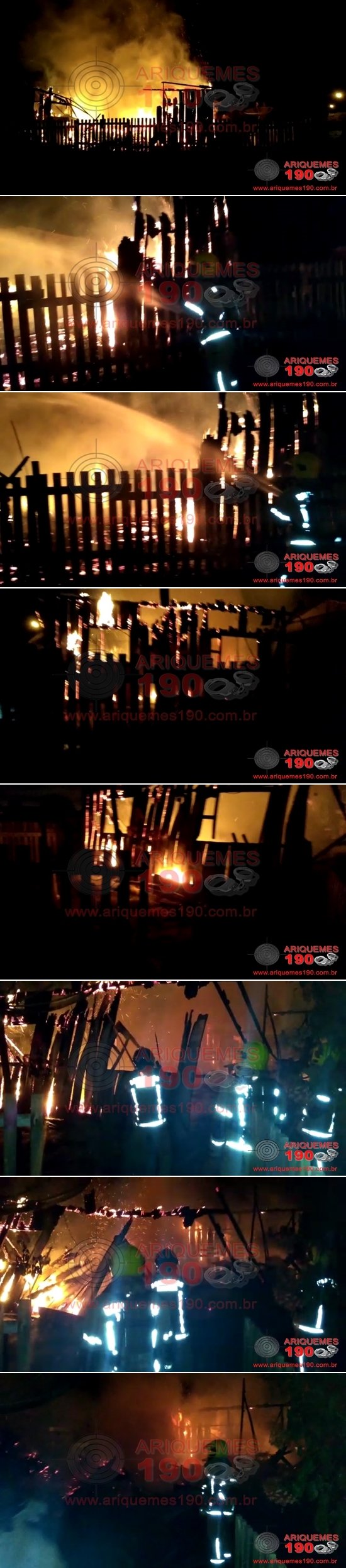 Por volta das 2h15m da madrugada deste Sábado, (16/03), a equipe do Corpo de Bombeiros foi acionada a comparecer na Rua das Flores, Bairro Jardim Primavera em Ariquemes, pois receberam telefonemas os quais relatavam que uma residência estaria em chamas. Ao chegar no local foi constatada a veracidade da informação, já visualizando mais da metade da casa consumida pelas chamas. Para piorar a situação a casa era de madeira, o que facilitou a propagação do fogo. Infelizmente toda a residência e o que tinha dentro dela foram queimados. A moradora relatou para a equipe de reportagem do Canal 35.1 e Site Ariquemes190, que estava dormindo, quando acordou o fogo já estava se alastrando bem rápido. A mulher conseguiu tirar de dentro da casa seus dois filhos pequenos, um menino de quatro anos, que é especial, e um bebê de apenas 10 meses. Sobre as causas do incêndio ainda é um mistério, pois a mesma relatou que não notou nenhuma anormalidade que possa ter causado o sinistro.
