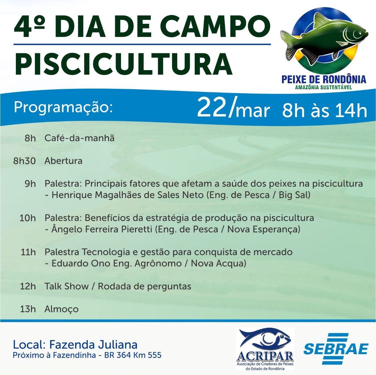ARIQUEMES: Vem ai o 4° Dia de Campo e Piscicultura apoio Prospera Agronegócios Big Sal