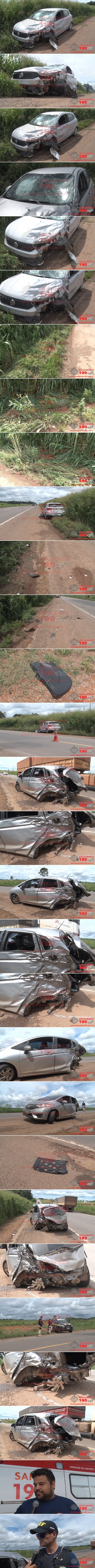 Eram por volta das 13h20m desta sexta-feira, (29/03), quando a Polícia Rodoviária Federal (PRF) e Serviço de Atendimento Móvel de Urgência (SAMU) foram acionados para atender uma ocorrência de acidente de trânsito ocorrido na Br-364 sentido Porto Velho, já próximo à Fazendinha. Imediatamente uma guarnição da PRF composta pelos Policiais: Silva, Arruda e Caniçaris, e a Unidade de Suporte Avançado (USA) do SAMU se deslocou ao local do fato, levando os profissionais: Médico Dr. Mauro, Enfermeiro Marconi, Técnico de Enfermagem Gener e Condutor Josué, onde ao chegarem no local se depararam com os veículos: Honda/Fit de cor prata, placas de Embu/SP e Fiat/Argo de cor prata, placas de Belo Horizonte-MG, apresentando grandes avarias em decorrência da violenta pancada entre os dois veículos, e as vítimas, uma mulher e um homem, ambos condutores de cada veículo, já andando, sem apresentar maior dano além do grande susto em decorrência da colisão. Ao conceder entrevista à equipe de reportagens do site Ariquemes190 e Canal 35.1 Digital, Dr. Mauro salientou que nunca havia visto alguém sair de um acidente semelhante a esse com tão poucos danos físicos, praticamente ilesos. Apesar de não haver queixa maiores, somente pequenas dores na região do abdômen devido à constrição do cinto, ambas as vítimas foram encaminhadas ao Hospital Regional de Ariquemes para serem avaliadas pela equipe médica de plantão e a realização de exames especializados para eliminar qualquer risco de lesão. PRF Silva relatou à equipe do Canal 35.1 e Ariquemes190, ao conceder entrevista, que os veículos seguiam em sentidos opostos, um para Porto Velho e outro sentido Jaru, momento em que, ao tentar desviar de um buraco, um dos condutores perdeu o controle da direção, rodou na pista e atingiu em cheio o outro veículo que trafegava na pista contrária. Os PRFs realizaram a sinalização das vias, para evitar que um novo acidente ocorresse, ficando no local para salvaguardar os bens das vítimas, até o momento da remoção dos veículos ao pátio da PRF/Ariquemes.