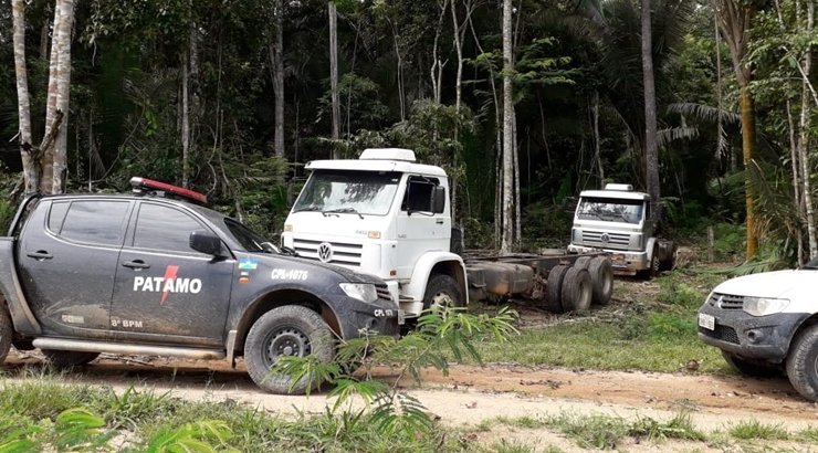 MACHADINHO DO OESTE: Polícia Militar de Jaru recupera dois caminhões roubados escondido em mata de fazenda