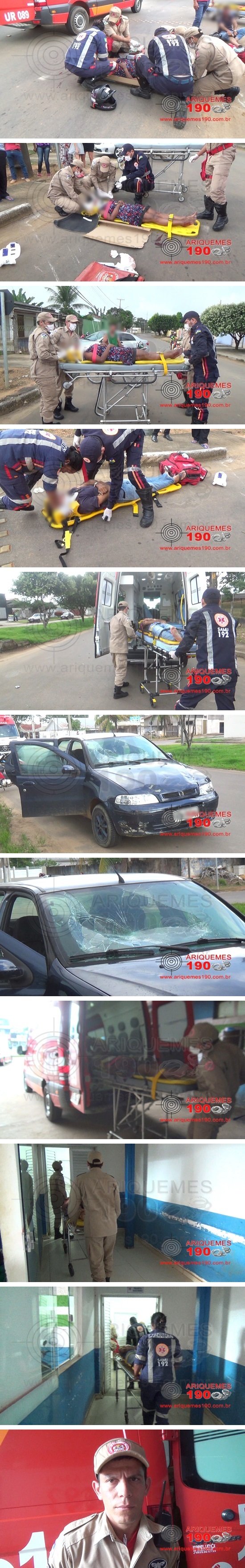 ARIQUEMES: Duas pessoas ficam feridas em colisão de carro e moto na Av. Rio Branco