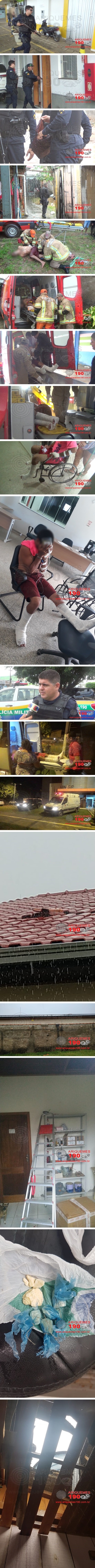 Na manhã deste domingo 28/04, a guarnição da Polícia Militar composta pelo Sargento Marcos e Soldados Werkhausen e Devanilson, realizava patrulhamento pela Rua Canindé no Setor Institucional, quando ao passar próximo a antiga Delegacia da Mulher, local conhecido como “galinheiro” utilizado para comércio e uso de entorpecente, os Militares avistaram um indivíduo suspeito. Foi dada ordem de parada ao sujeito que jogou uma carteira de cigarro contendo um invólucro com vários pedaços de crack, quatro invólucros em um plástico azul contendo mais crack, quatro invólucros em papel alumínio contento maconha e R$ 15,00 em espécie. Ao ser feita a pesquisa nominal, foi constatado que o sujeito possuía passagem pela Polícia por tráfico de drogas e violência doméstica. Os Militares deram voz de prisão ao sujeito, momento que foi algemar, o indivíduo entrou em luta corporal com os policiais e empreendeu fuga a pé. O elemento invadiu comércios, residências, pulou muros, destruiu telhados, momento que ao pular de um local de aproximadamente quatro metros de altura, fraturou os dois pés. A guarnição do Corpo de Bombeiros esteve no local, onde imobilizou os pés do indivíduo que foi conduzido ao Pronto Socorro do Hospital Municipal. O medico de plantão fez encaminhamento para que o elemento fosse para Porto Velho a fim de receber atendimento especializado. Em contato com o Delegado de Plantão, a guarnição foi orientada a apresentar o sujeito na Unidade Integrada de Segurança Pública (UNISP). O Delegado ouviu o sujeito, em seguida liberou o mesmo para ser conduzido ao pronto socorro de Porto Velho. Diante do exposto, foi registrado o Boletim de Ocorrência Policial (BOP) para a tomada das providências que o caso requer.