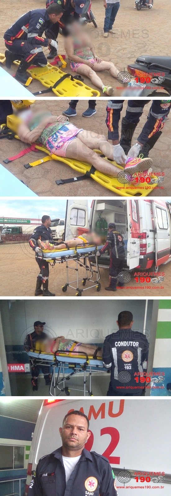 ARIQUEMES: Mulher sofre queda de moto após derrapar em pátio de posto de combustível