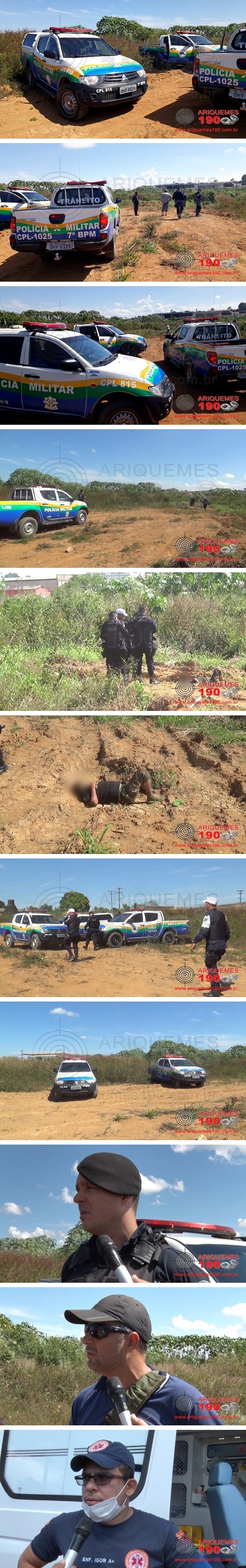 Na manhã desta segunda-feira 20/05, a Polícia Militar recebeu a denúncia que próximo a BR-364, em um terreno baldio, havia uma pessoa morta. Ali chegando, os Militares notaram que o corpo já estava se decompondo e acionaram o Serviço de Atendimento Móvel de Urgência (SAMU). No local, os socorristas confirmaram a morte do homem que apresentava alguns sinais de espancamento. A Polícia Técnico-Científica (POLITEC) esteve realizando a perícia, onde não encontrou perfurações que podem ter causado a morte do andarilho e segundo o perito a morte pode ter sido natural e o homem estaria no local há pelo menos três dias. O corpo ainda não identificado foi removido para que o exame fosse realizado no Instituto Médico Legal (IML). Diante do exposto, foi registrado o Boletim de Ocorrência Policial (BOP) e o caso já está sendo investigado.