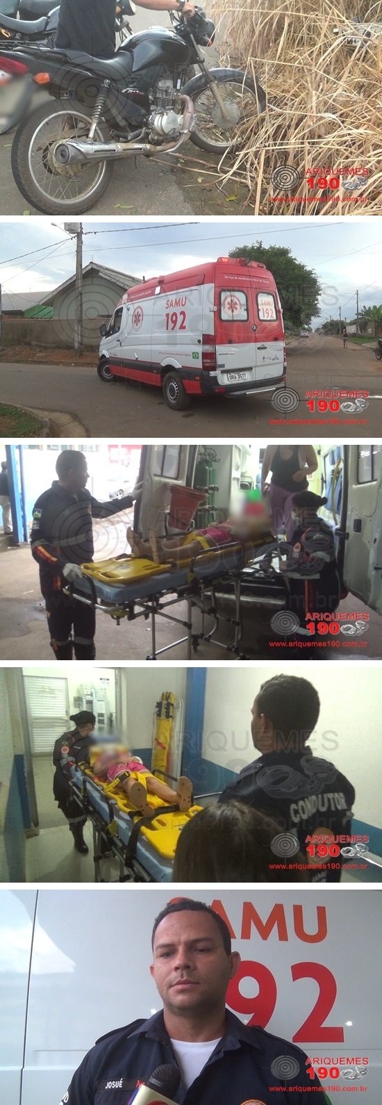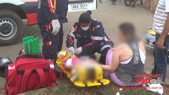 Durante a tarde desta quinta-feira 23/05, a equipe do Serviço de Atendimento Móvel de Urgência (SAMU) recebeu a solicitação de comparecer no Bairro Nova União 3, para atender um acidente. No local, os socorristas constataram que três pessoas estavam envolvidas no acidente, sendo que os condutores não quiseram ser socorridos. Populares relataram que a mãe e a criança transitavam de moto, quando houve a colisão com outra motocicleta. A criança sofreu escoriações pelo corpo e recebeu curativo no braço. Após ser atendida, a criança acompanhada da mãe foram conduzidas ao pronto socorro para receberem atendimento médico especializado.
