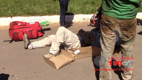ARIQUEMES: Acidente na Av. Jaru deixa motociclista ferido e com suspeita de fratura no quadril