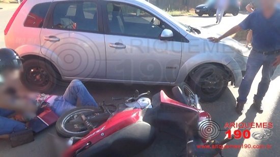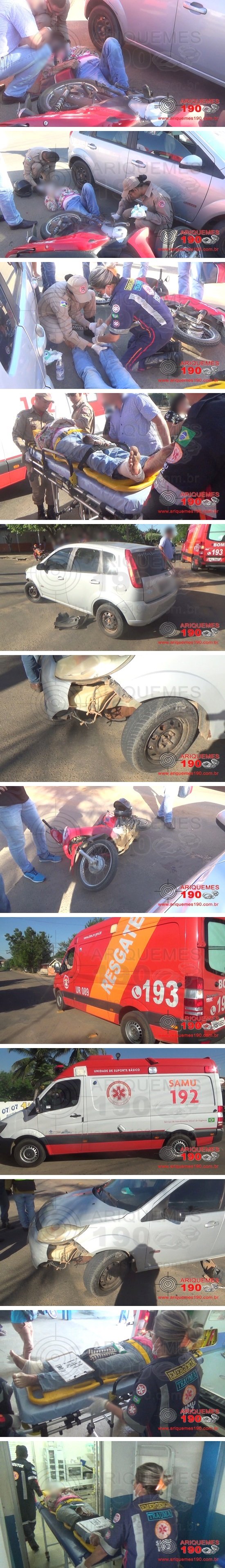 ARIQUEMES: Colisão de carro e moto deixa senhora ferida no Setor 05