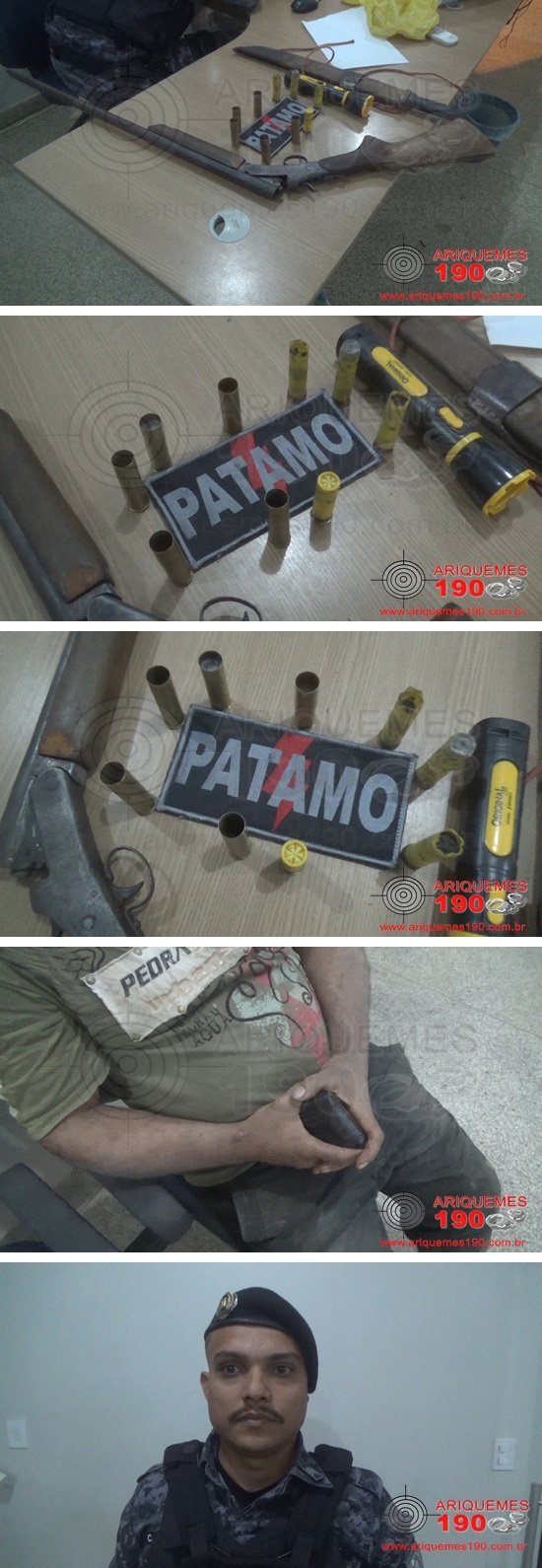 Na noite desta terça-feira 18/06, a guarnição de Patrulhamento Tático Móvel (PATAMO) realizava diligências pelo Travessão B-80 da RO-257, quando em dado momento, os Policiais avistaram um cidadão conduzindo uma motocicleta da marca Honda, modelo Titan de cor azul. Foi realizada a abordagem, e com o motociclista foi encontrada uma espingarda calibre .20, um facão e vários cartuchos calibre .20. A motocicleta não possuía restrição, por isso, foi liberada para um amigo do indivíduo. Ao ser indagado quanto a arma, o cidadão relatou que teria usado para caçar e que estava retornando para sua casa. Diante do exposto, o indivíduo e a arma foram apresentados na Unidade Integrada de Segurança Pública (UNISP), onde foi registrado o Boletim de Ocorrência Policial (BOP) para a tomada das providências.