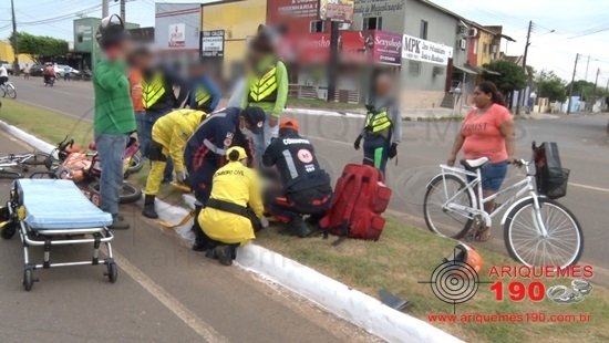 ARIQUEMES: Mototaxista fica ferido em acidente com bicicleta na Av. Jamari