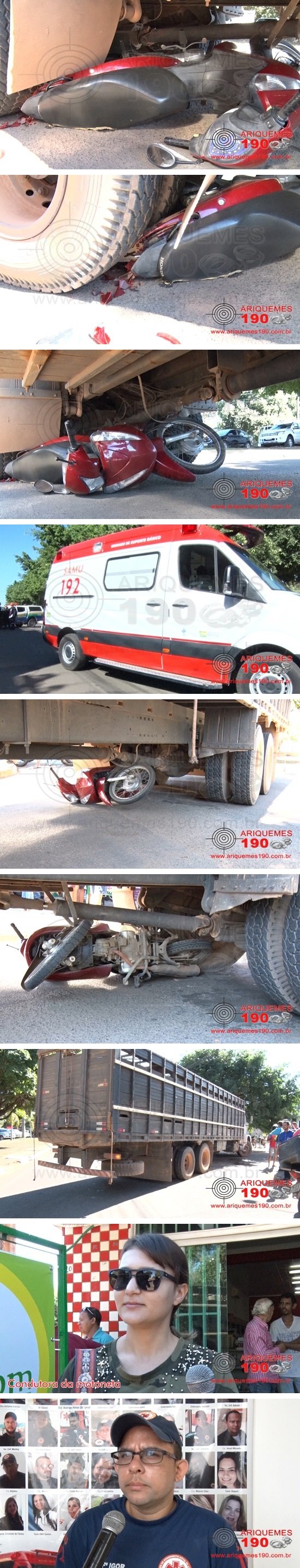 ARIQUEMES: Policial Militar escapa da morte após caminhão passar por cima de motoneta na Av. JK