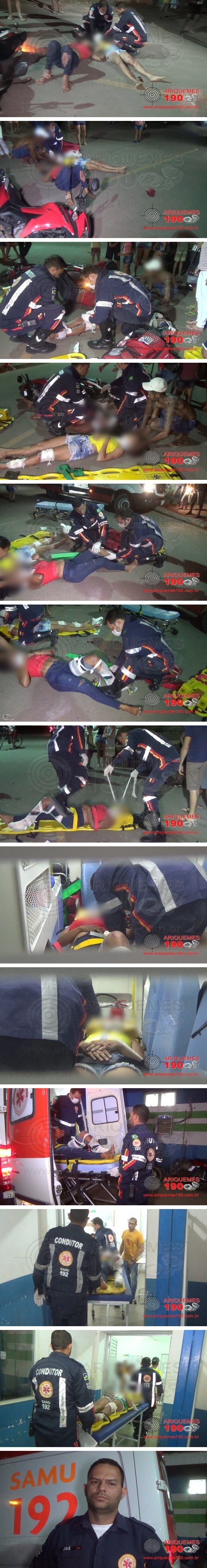 Na noite deste domingo 07/07, a equipe do Serviço de Atendimento Móvel de Urgência (SAMU) foi acionada a comparecer no Setor 06, para atender mais um acidente de trânsito. Chegando ao local, os socorristas se depararam com duas mulheres caídas ao solo, apresentando escoriações e se queixando de dores. A condutora, também apresentava possível fratura no pé. Populares informaram que as mulheres transitavam em uma motocicleta, quando acabaram colidindo com uma caminhonete estacionada. Ambas as vítimas foram imobilizadas e conduzidas ao Pronto Socorro do Hospital Municipal para receber atendimento médico especializado.