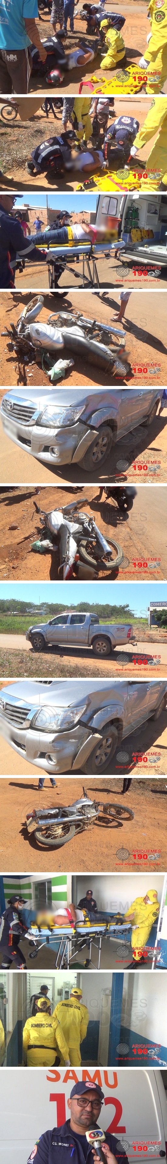 ARIQUEMES: Motociclista fica ferido após colidir com caminhonete no Jardim Zona Sul