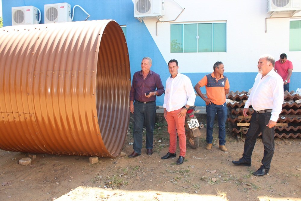 O deputado aproveitou sua ida ao município para verificar os tubos armcos, adquiridos através de emenda parlamentar de sua autoria, que estão sendo montados para serem colocados em vários pontos críticos e substituição de pontes de madeira nas linhas vicinais.