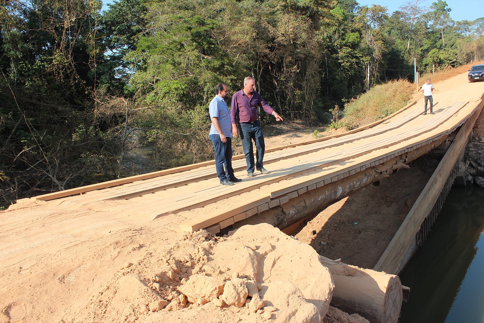 “As pontes provisórias foram feitas após as últimas cheias que derrubaram as pontes de concreto, porém, era pra dar início na construção das pontes definitivas logo em seguida, e não temos nenhuma informação sobre alguma ação neste sentido, observei que estas pontes já estão claramente cedendo, e certamente não resistirão por muito tempo, colocando em risco a vida de pessoas, por que podem não suportar o peso dos veículos e com certeza não suportam as cheias”, disse Adelino.