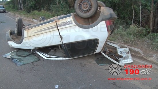 ARIQUEMES: Carro capota na BR-421 após condutor perder controle de direção