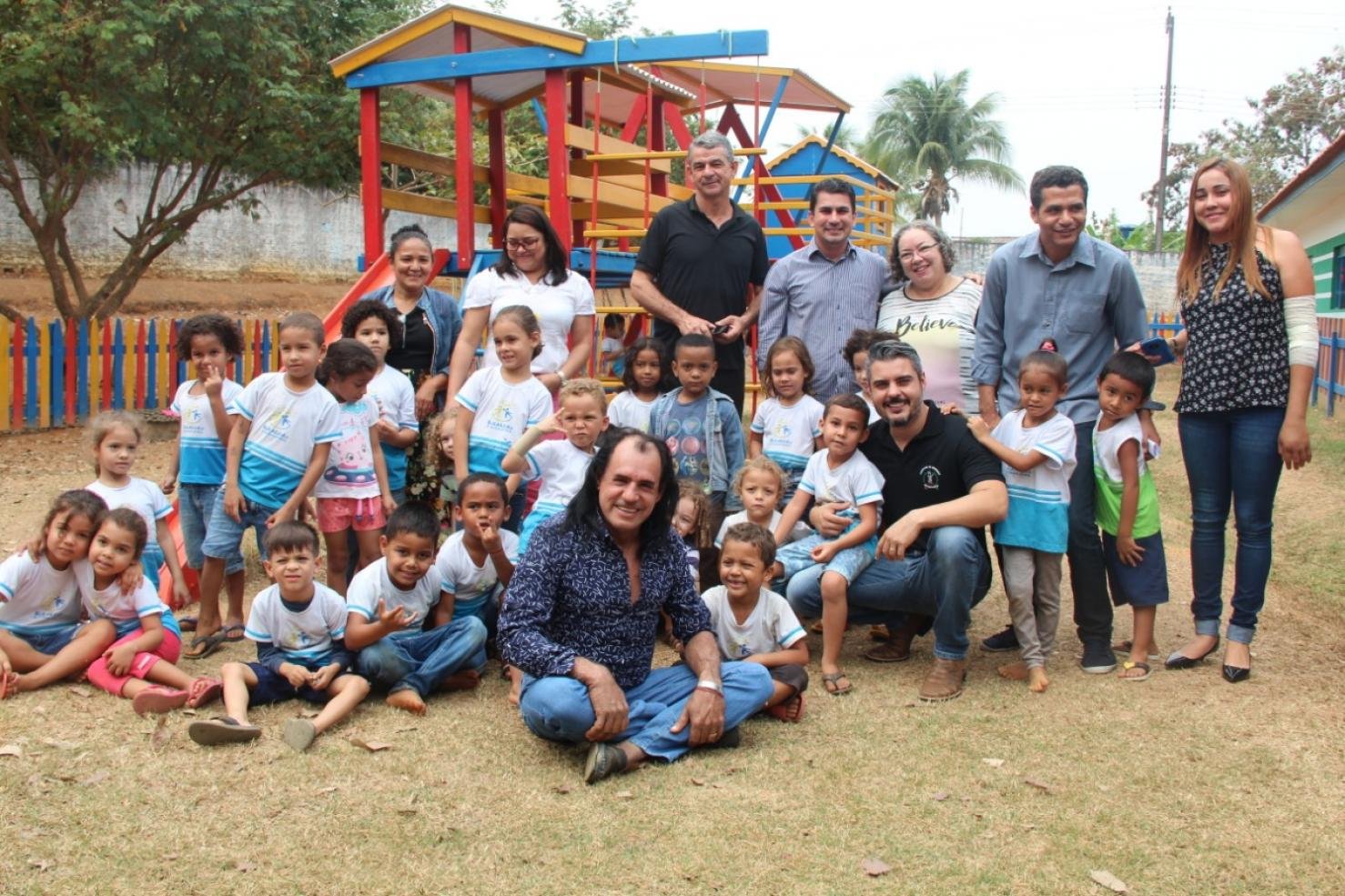 Um kit de playground, obtido com emenda parlamentar no valor de 40 mil reais do Deputado Estadual Adelino Follador (DEM), também foi entregue durante a solenidade que contou com a presença do prefeito Thiago Flores.
