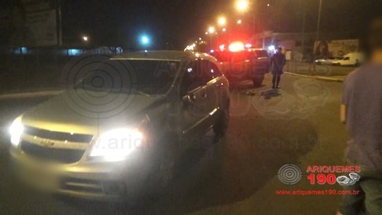ARIQUEMES: Motociclista sofre fratura após colisão com carro em rotatória