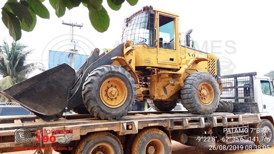 A guarnição de Patrulhamento Tático Móvel (PATAMO) recebeu a informação que na Linha 106 de Cujubim havia um maquinário roubado. Na manhã deste domingo, foi feito o deslocamento, sendo que durante as buscas, foi encontrada uma pá carregadeira da marca Volvo no meio da mata. Os Militares também constataram que o local havia sido invadido e estava com várias áreas de desmatamento. Devido ao eminente risco de conflito, a pá carregadeira foi removida do local e apresentada na Unidade Integrada de Segurança Pública (UNISP), para posteriormente ser restituída ao proprietário. O veículo foi roubado no dia 06/07 em uma propriedade localizada na RO-257.