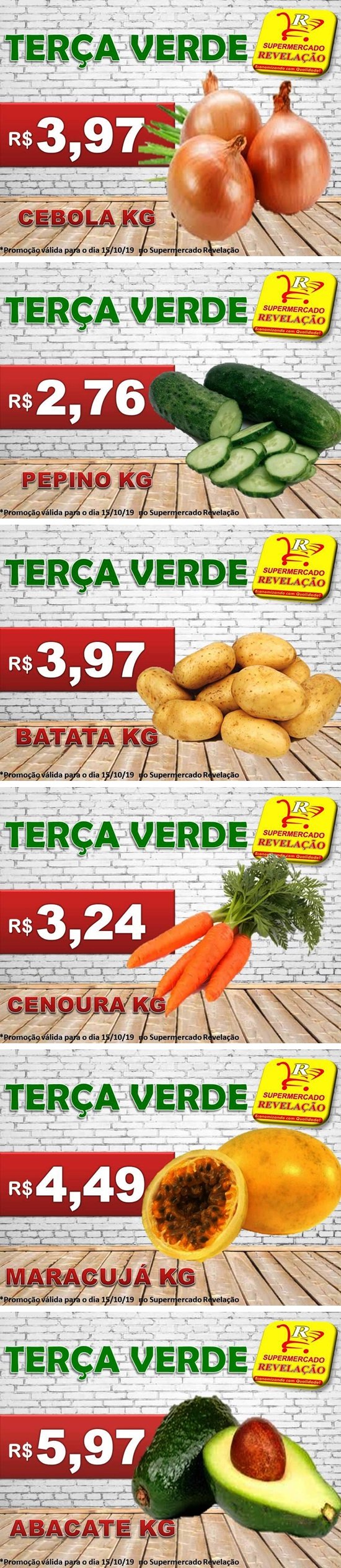 HOJE terça-feira, o Supermercado Revelação realiza a terça verde com promoções incríveis no hortifrúti. Confira: