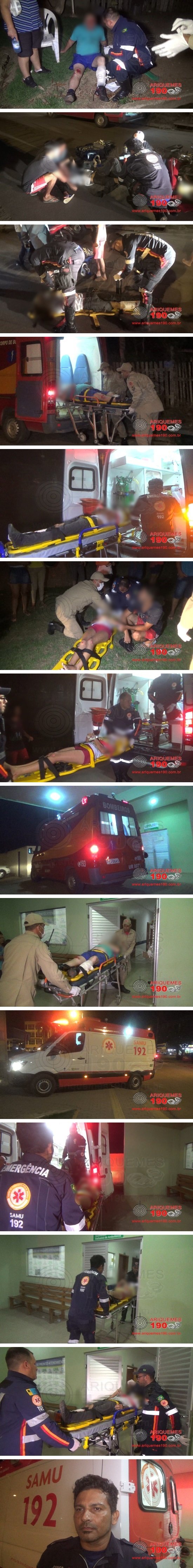 Na noite desta segunda-feira 14/10, equipes do Serviço de Atendimento Móvel de Urgência (SAMU) e Corpo de Bombeiros foram acionadas a comparecer na Rua Moema no Jardim Jorge Teixeira, onde havia acontecido um acidente. No local, os socorristas constataram a veracidade da informação, se deparando com três vítimas. O senhor que foi atropelado apresentava escoriações e um corte na região da panturrilha. O motociclista sofreu uma possível fratura na região da tíbia e a jovem apenas escoriações. Os profissionais prestaram atendimento pré-hospitalar as vítimas que foram conduzidas ao Pronto Socorro da Unidade de Pronto Atendimento (UPA) para receber atendimento médico especializado.