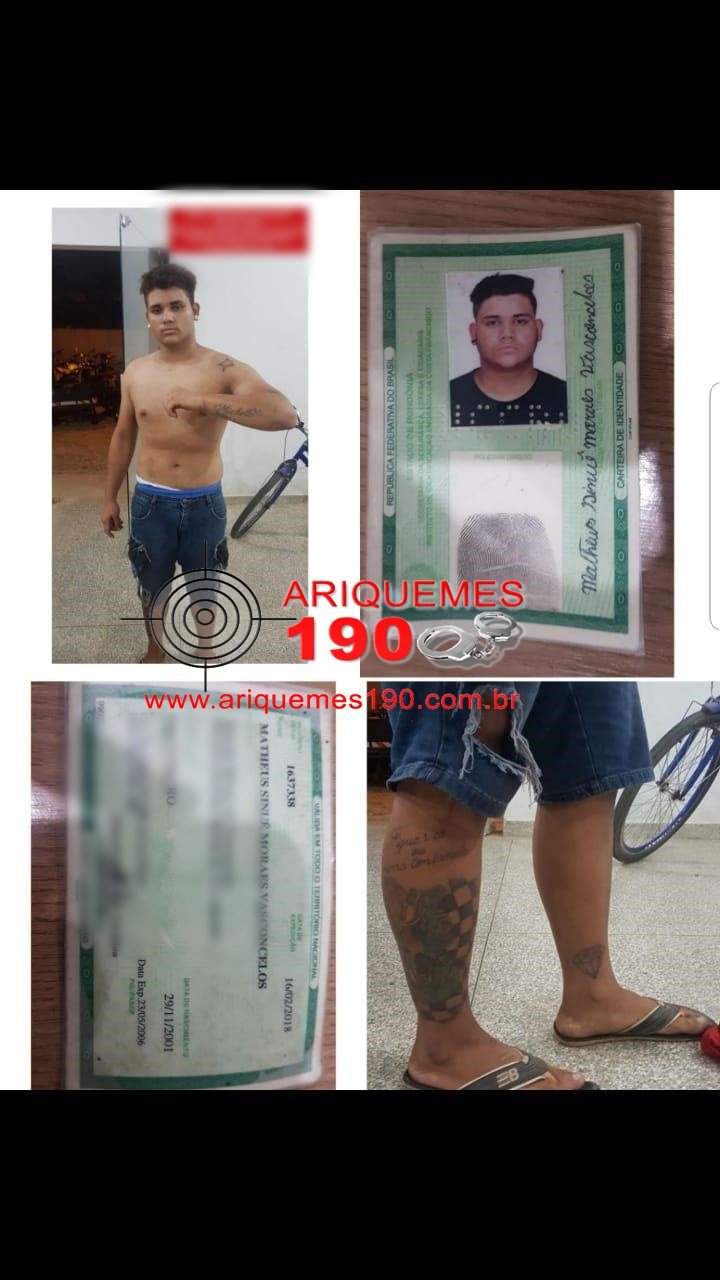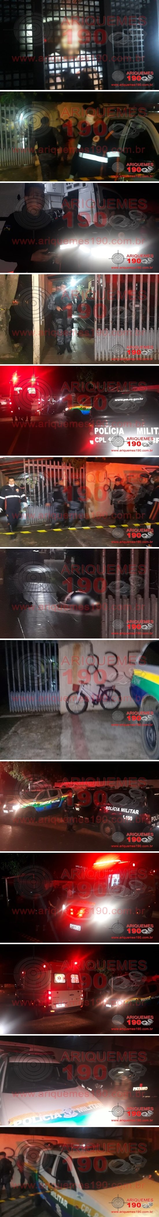 Às 20h30m desta quinta-feira, (24/10), a Polícia Militar foi informada de um roubo em andamento em uma residência localizada na Alameda entre a Av. JK e a 1º Rua do Setor 04 de Ariquemes. Quando os PMs chegaram no local, os elementos estavam saindo da casa, sendo dado ordem para se entregar, mas os marginais não obedeceram e o que estava armado apontou a arma para os PMs, sendo alvejado com um disparo. O outro elemento foi preso e conduzido a Unidade de Segurança Pública (UNISP). O Serviço de Atendimento Móvel de Urgência (SAMU) esteve no local e constatou o óbito de Matheus Sinue Moraes Vasconcelos, 18 anos.