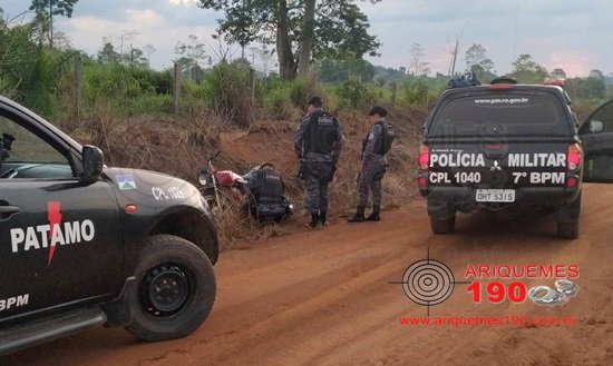 Após realizar abordagens na Linha C-20 entre Cacaulândia e Monte Negro, a guarnição de Patrulhamento Tático Móvel (PATAMO) composta pelos Tenentes Eduardo e Lataliza, Cabos Alexandre, Erika e Holanda e o Soldado Tafarel, foi feita a averiguação no sistema de uma moto com suspeita de adulteração. Foi constatado que o veículo é produto de furto/roubo. O condutor e o proprietário foram conduzidos à Delegacia de Polícia Civil de Monte Negro onde foram entregues juntamente com o veículo para a autoridade de Polícia Judiciária.