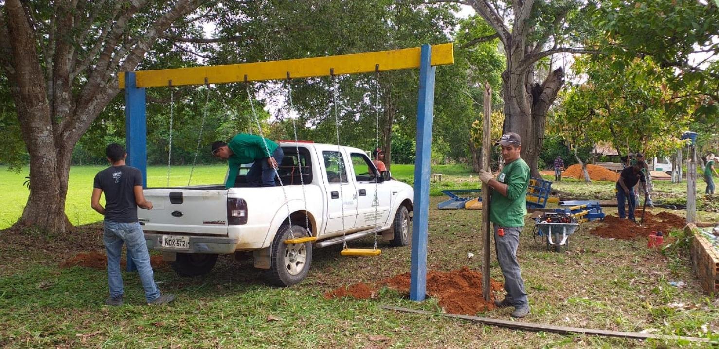 A Prefeitura de Ariquemes, através da Secretaria Municipal de Meio Ambiente (SEMA), contemplou nos últimos dias a Comunidade do Hortifrutigranjeiro, localizada no KM 12 da RO-257, com um parquinho fabricado com madeira apreendida. A parceria da SEMA com o Tribunal de Justiça (TJ-RO) ocorre por meio do Juizado Especial Criminal (JECRIM) da Comarca de Ariquemes e a produção dos brinquedos acontece com mão-de-obra de apenados do regime semiaberto.
