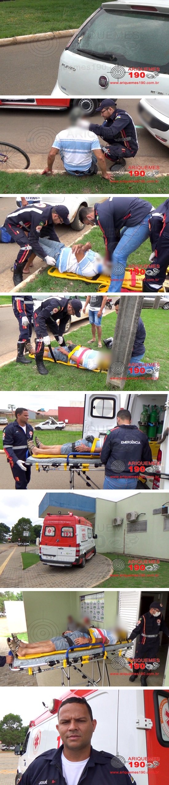 ARIQUEMES: Ciclista colide em traseira de carro e sofre ferimentos na face