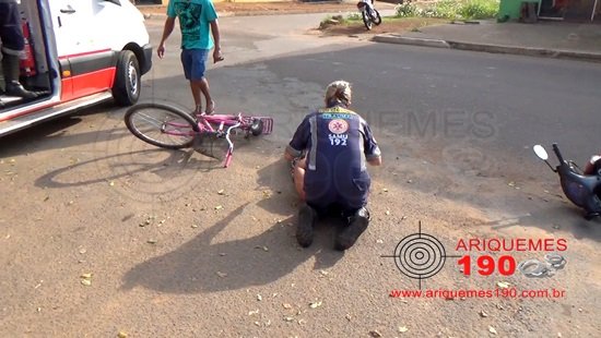 ARIQUEMES: Acidente entre moto e bicicleta é registrado em frente ao quartel do Corpo de Bombeiros