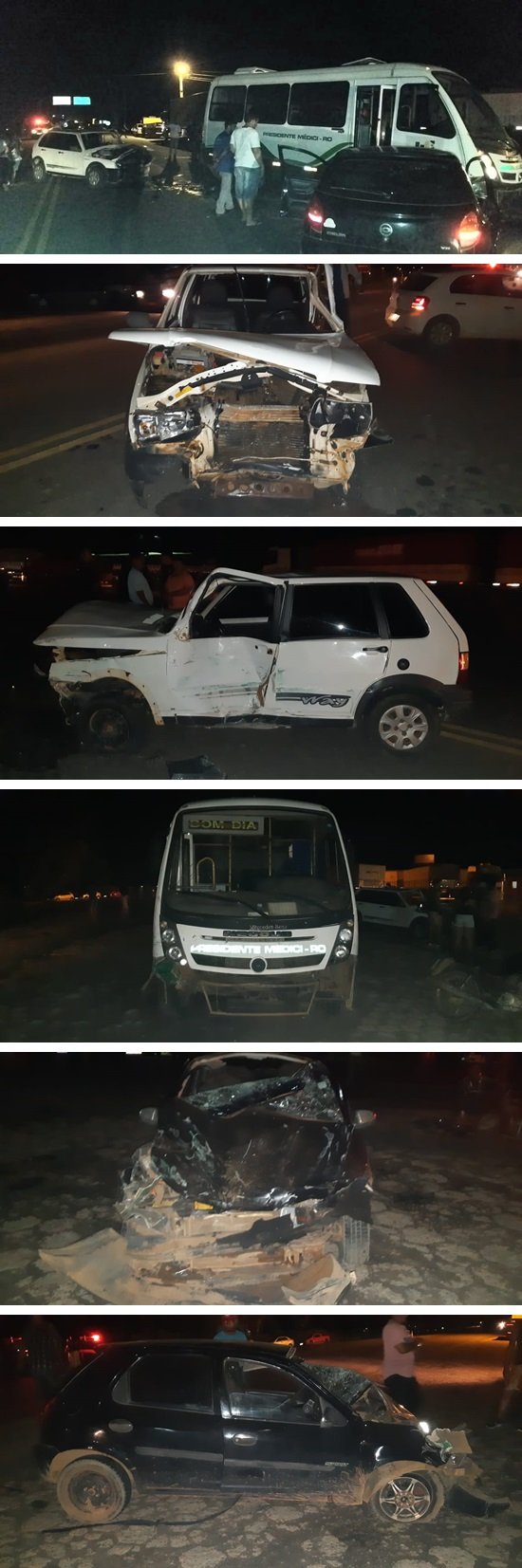 As vítimas que se feriram foram 3 pessoas que estavam do Uno e 5 ocupantes do Celta, entre elas uma passageira que estava no banco da frente e uma menina que estava no banco de trás, que foram socorridas com mais gravidade ao Hospital Municipal de Presidente Médici. Os ocupantes do micro-ônibus, na maioria atletas que se deslocavam para o município de Rolim de Moura, não se feriram.