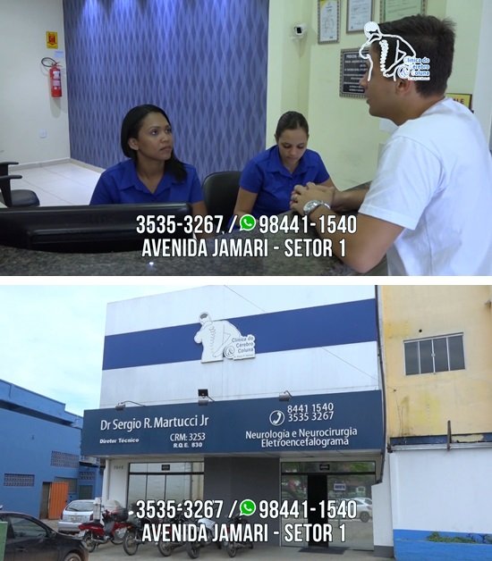 Clínica do Cérebro e Coluna, Dr. Sérgio Martucci Neurocirurgião especialista em cabeça e coluna. Atende as seguintes patologias, tanto para diagnósticos, tratamento clínico e cirúrgico da cabeça e coluna hérnia de disco, dor neuropática, dor lombar crônica ou cervical, cefaleias, depressão, Parkinson, Alzheimer, AVC e atendimentos em exames de eletroencefalograma. Clinica do Cérebro e Coluna está localizada na Avenida Jamari Setor 01 telefone 3535-3267 ou 98441-1540.