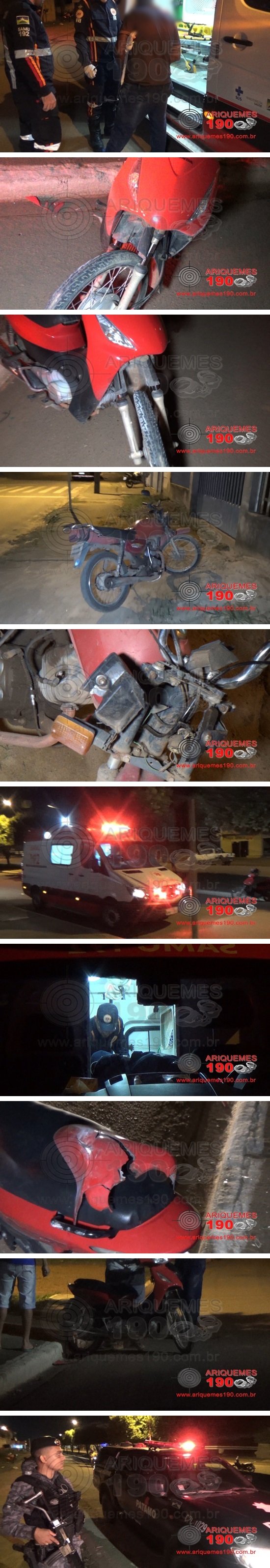 ARIQUEMES: Motociclista fica ferido em colisão de motos na Av. Canaã