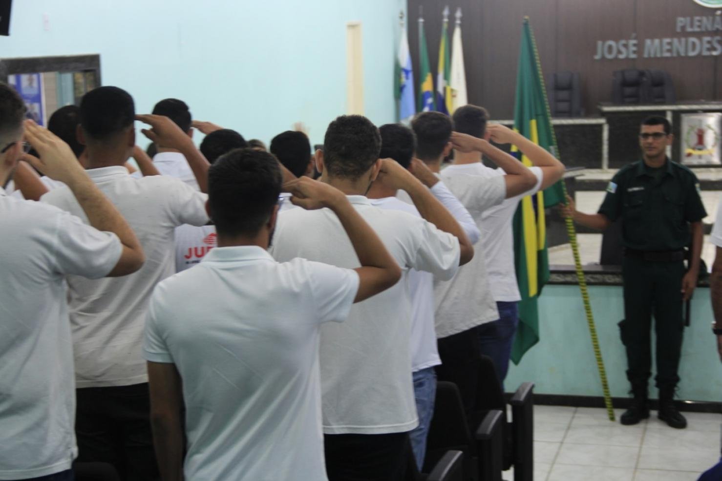 A cerimônia de juramento à bandeira e entrega de 100 certificados de dispensa de incorporação (CDI) ocorreu na manhã de sexta-feira (8), na Câmara Municipal de Ariquemes. O ato faz parte do processo do alistamento militar, que desde 1906 é obrigatório a todo brasileiro nato, do sexo masculino, que completa 18 anos de idade e deve ser feito no primeiro semestre em que o cidadão alcança a maioridade penal, para evitar de pagar multa. Esta foi a sétima cerimônia de dispensa realizada em 2019.