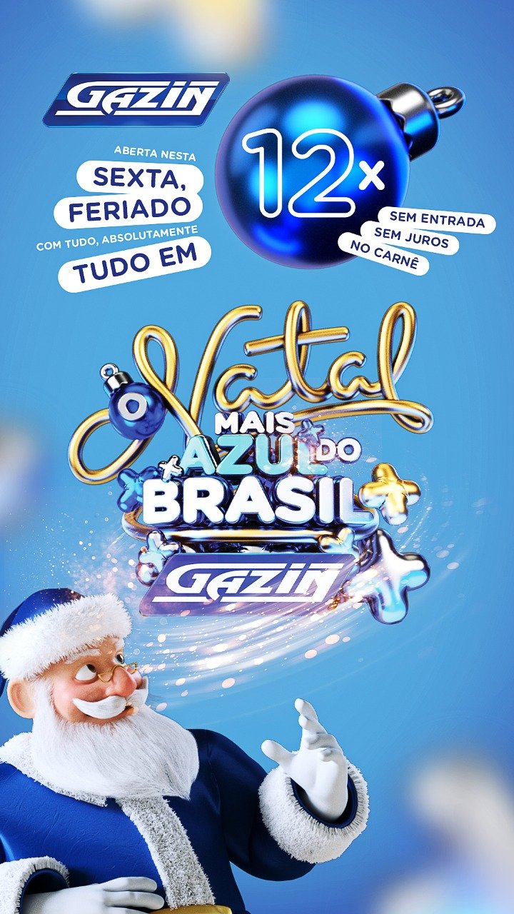 Nesta sexta-feira 15/11, a Gazin abre as portas com uma promoção imperdível! Toda loja em 12 vezes sem entrada e sem juros no carnê. O presente de Natal chegou mais cedo! Participe da estreia do Natal mais Azul do Brasil. Oferta válida somente entre os dias 15 e 16/11. Móveis Gazin, a vista ou no carnê sempre fazendo o melhor pra você. Na Av. Tancredo Neves em frente à Prefeitura, na Alameda do Ipê e na Av. Tucanos no Setor 09.