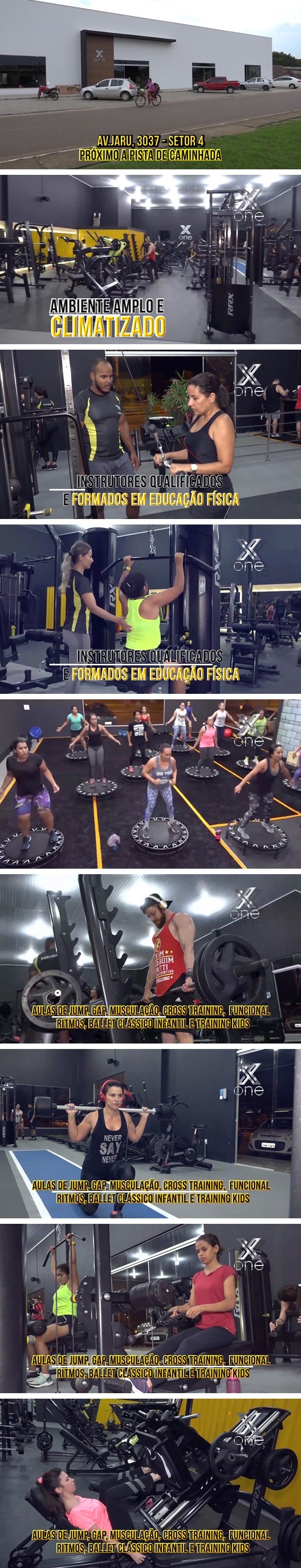X One a academia mais esperada de Ariquemes oferece ambiente amplo e climatizado com instrutores qualificados e formados em educação física protos para melhor lhe atender. A X One oferece aulas de Jump, Gap, musculação, Cross Training, funcional, ritmos, Ballet Clássico infantil e training Kids. O horário de funcionamento da X One também é diferenciado, aberta todos os dias das 5h30m à 0h. Não fecha para almoço. A Academia X One está localizada na Avenida Jaru Setor 04 próximo à pista de caminhada.