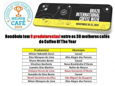 Entre os 30 melhores cafés da espécie canéfora (robusta e conilon) que estão concorrendo à premiação nacional no Coffee of the Year em 2019, estão nove de Rondônia. E entre estes temos duas mulheres, um indígena, jovens e famílias que se dedicam com muito amor à cafeicultura de Rondônia.