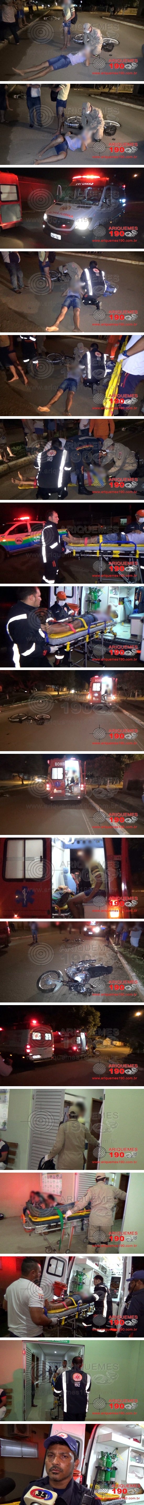 Na noite desta quarta-feira 20/11, a guarnição do Corpo de Bombeiros e a equipe do Serviço de Atendimento Móvel de Urgência (SAMU) foram acionadas a comparecer na Avenida Machadinho, onde havia acontecido um acidente. No local, os socorristas se depararam com três vítimas, onde duas estavam na bicicleta e a outra estava na moto, quando houve a colisão. As três vítimas receberam atendimento e foram conduzidas ao Pronto Socorro da Unidade de Pronto Atendimento (UPA) para receber atendimento médico especializado.