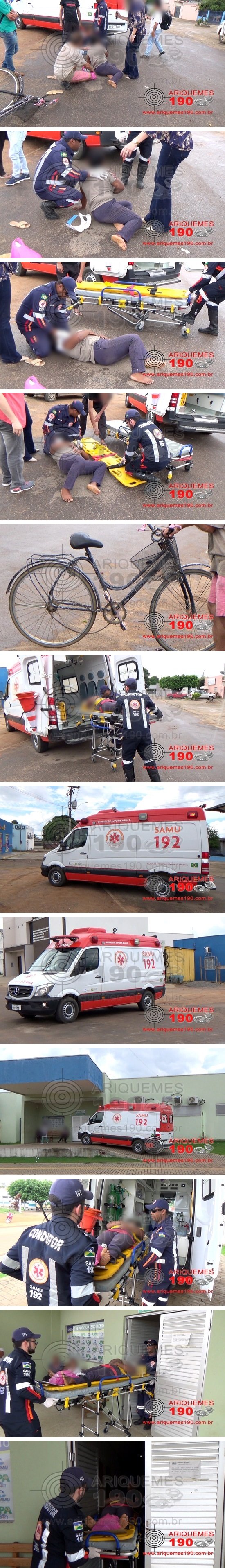 Durante a tarde desta quinta-feira 21/11, a equipe do Serviço de Atendimento Móvel de Urgência (SAMU) foi acionada a comparecer na Alameda Brasília no Setor 03, onde havia acontecido um acidente. No local, os socorristas foram informados que a vítima transitava de bicicleta, quando no cruzamento, foi atingida por um automóvel. A vítima sofreu escoriações e se queixava de dores. Depois de imobilizada, a mulher foi conduzida ao Pronto Socorro da Unidade de Pronto Atendimento (UPA) para receber atendimento médico especializado.