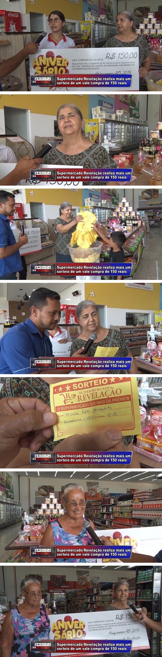 Toda semana o Supermercado Revelação está realizando super sorteio em comemoração aos 15 anos de Revelação em Ariquemes e no último sábado 23/11, foi sorteado um vale compra no valor de R$ 150,00. A sortuda foi a Senhora Maria Alves Gonçalves moradora do Setor 09. E você não pode perder, pois tem muitas promoções nas duas lojas do Revelação! Ainda serão sorteados mais 7 vales compras, 4 TV’s de 32 polegadas, 4 bicicletas, 2 microondas de 20 litros e 2 fogões de 4 bocas. Os sorteios serão realizados nos dias 30/11, 07/12, 14/12, 21/12, 28/12 e 30/12. Para ganhar os cupons, basta fazer compras acima de R$ 30,00 e boa sorte! Corra para o Supermercado Revelação, o lugar certo para a sua economia e concorrer a prêmios, na Rua Registro, Setor 09, nº 4970 em frente à Praça e na Avenida Guaporé Setor 05.