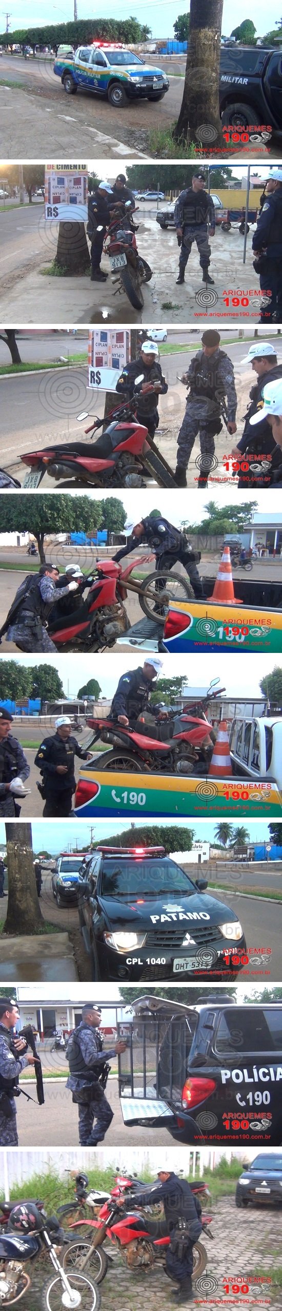 Por volta das 18 horas desta quarta-feira 27/11, a guarnição de Patrulhamento Tático Móvel (PATAMO) 02 realizava diligências pela Avenida Canaã no Setor 02, quando os Militares avistaram uma motocicleta da marca Honda, modelo NXR com placa de Porto Velho e sem o lacre. Em consulta veicular foi constatado que a placa pertencia a uma Titan. O proprietário relatou que colocou a placa na moto, pois a outra placa teria caído. Diante dos fatos, o cidadão e a moto foram apresentados na Unidade Integrada de Segurança Pública (UNISP), onde foi registrado o Boletim de Ocorrência Policial (BOP) para a tomada das providências que o caso requer.