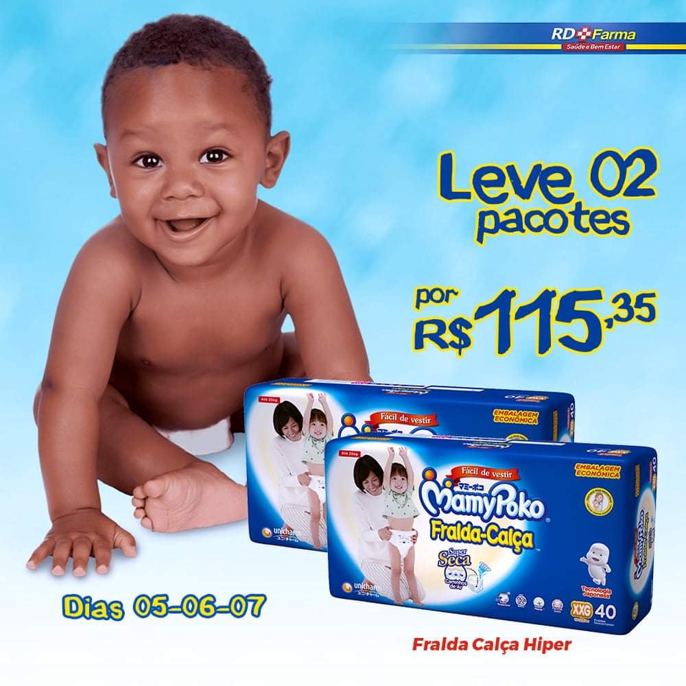 Você já sabe que o melhor lugar para comprar fraldas em Ariquemes é na RD Farma e nesta quinta-feira, sexta-feira e sábado tem uma super promoção! Leve dois pacotes de fraldas Mamy Poko calça hiper por apenas R$ 115,35. É o melhor preço de Rondônia! Promoção válida para compras de fraldas Mamy Poko no mesmo tamanho. Visite a RD Farma localizada na Avenida Tancredo Neves no centro e aproveite. RD Farma, saúde e bem-estar.