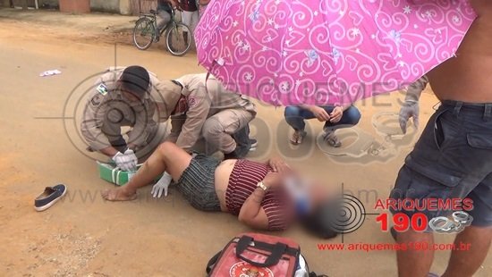 ARIQUEMES: Colisão de moto e caminhonete deixa mulher gravemente ferida no Setor 11