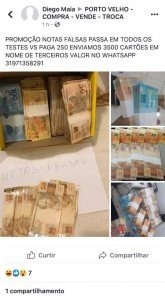 Chega a ser impressionante a falta de preocupação com exposição desses criminosos ao fazerem anúncios em grupos de Facebook. Em geral, garantem que as notas têm marca d’água e são capazes de passar nas máquinas testa-nota e no teste das canetas de luz negra.