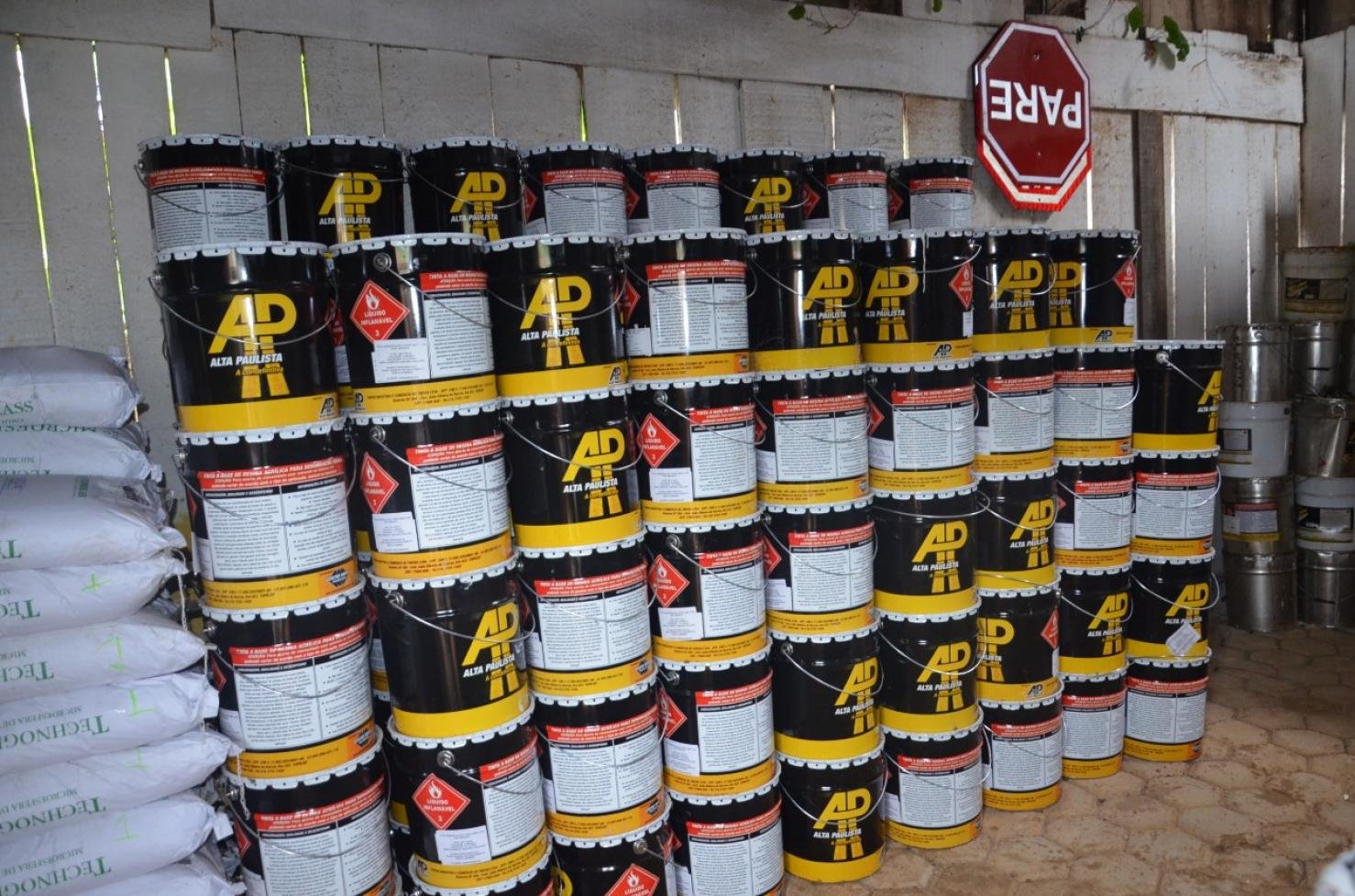 - 102 baldes de tinta para demarcação viária em resina acrílica, na cor branca;