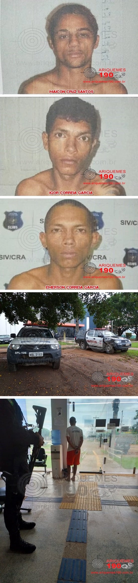 Na madrugada deste sábado 14/12, quatro apenados que estavam em uma cela de inclusão arrancaram a grade e se evadiram. O presídio contava com apenas seis Policiais Penais de Plantão sendo que mesmo agindo rápido, apenas um detento foi recapturado. Maicon Cruz Santos de 28 anos, Igor Correia Garcia 23 anos e Emerson Correia Garcia 20 anos conseguiram se evadir. Informações passadas a equipe de reportagens da TV do Povo Canal 35.1 e Site Ariquemes 190, dão conta que a cela de inclusão não é adequada para cumprimento de pena, tendo em vista que a segurança é mais frágil, fato este que facilitou a fuga. Os apenados estavam na referida cela devido a super lotação da unidade. A reportagem também foi informada que existe Boletim de Ocorrência registrado onde relata a fragilidade na segurança da unidade e a falta de servidores. As fotos dos elementos estão sendo divulgadas no intuito de a população ajudar na recaptura, onde denúncias podem ser feitas para a Polícia Militar através do 190 ou Polícia Civil através do 197.