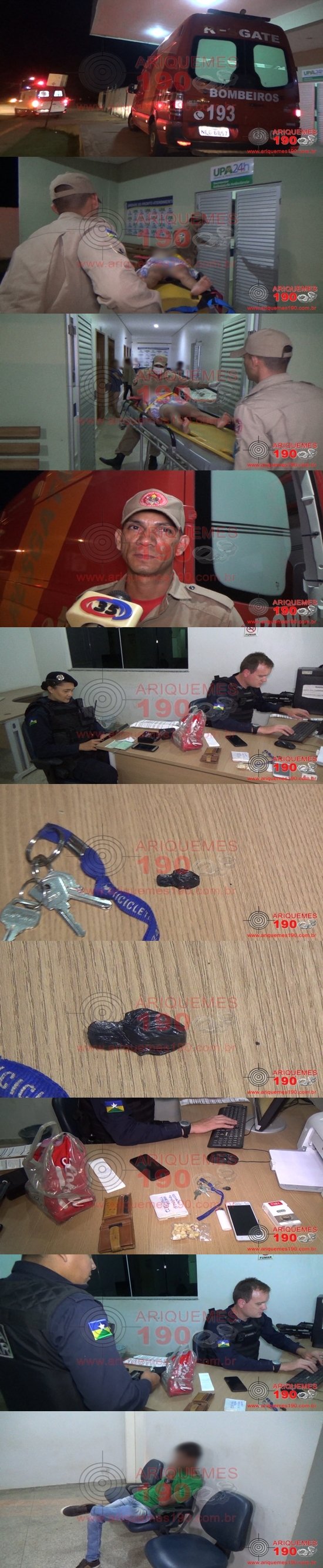 Era por volta das 01h26min, desta quarta-feira, dia 01/01/2020, quando a equipe do Corpo de Bombeiros e Polícia Militar foram acionadas a comparecer na Rua Céu Azul, Setor 09 em Ariquemes, pois no local teria acabado de acontecer um acidente de trânsito onde uma vítima, possivelmente uma criança, estaria caída ao solo em com fraturas. De imediato a equipe dos Bombeiros juntamente com a Polícia Militar se deslocaram até o referido endereço, onde puderam constatar a veracidade das informações repassadas à Central do COBOM. De imediato os socorristas iniciaram os procedimentos de primeiros socorros à criança, a qual se queixava de dores no ombro, local onde possivelmente teria ocorrido uma fratura na clavícula. Diante dos fatos a vítima foi imobilizada e conduzida até a Unidade de Pronto Atendimento (UPA), onde recebeu atendimento médico especializado para confirmação de diagnósticos. A Polícia Militar, em averiguação pelo local do acidente avistou o condutor da motocicleta, marca Yamaha, modelo XTZ 125 cor azul, o senhor R.S.P. 36 anos, o qual, segundo relatos do boletim de Ocorrências registrado sob n° 106990, estava visivelmente embriagado. O mesmo relatou aos Policiais que estava transitando com sua motocicleta, quando em dado momento a jovem atravessou na pista sem condições de frear, havendo a colisão. Além de ainda estar carregando uma sacola na motocicleta, uma sacola com quatro latinhas de cerveja intactas. Na revista pessoal fora encontrado um invólucro de sustância entorpecente aparentando ser Crack. Diante dos fatos o mesmo foi conduzido até o Posto de Polícia Rodoviária Federal, para que pudesse ser realizado o teste do Etilômetro, o qual detectou que o condutor estava com o valor alcóolico de 1,03Mg/l. Mediante as constatações o condutor foi encaminhado até a Unidade de Segurança Pública (UNISP), juntamente com as cervejas e o entorpecente, para que possam ser tomadas as providências cabíveis ao fato.